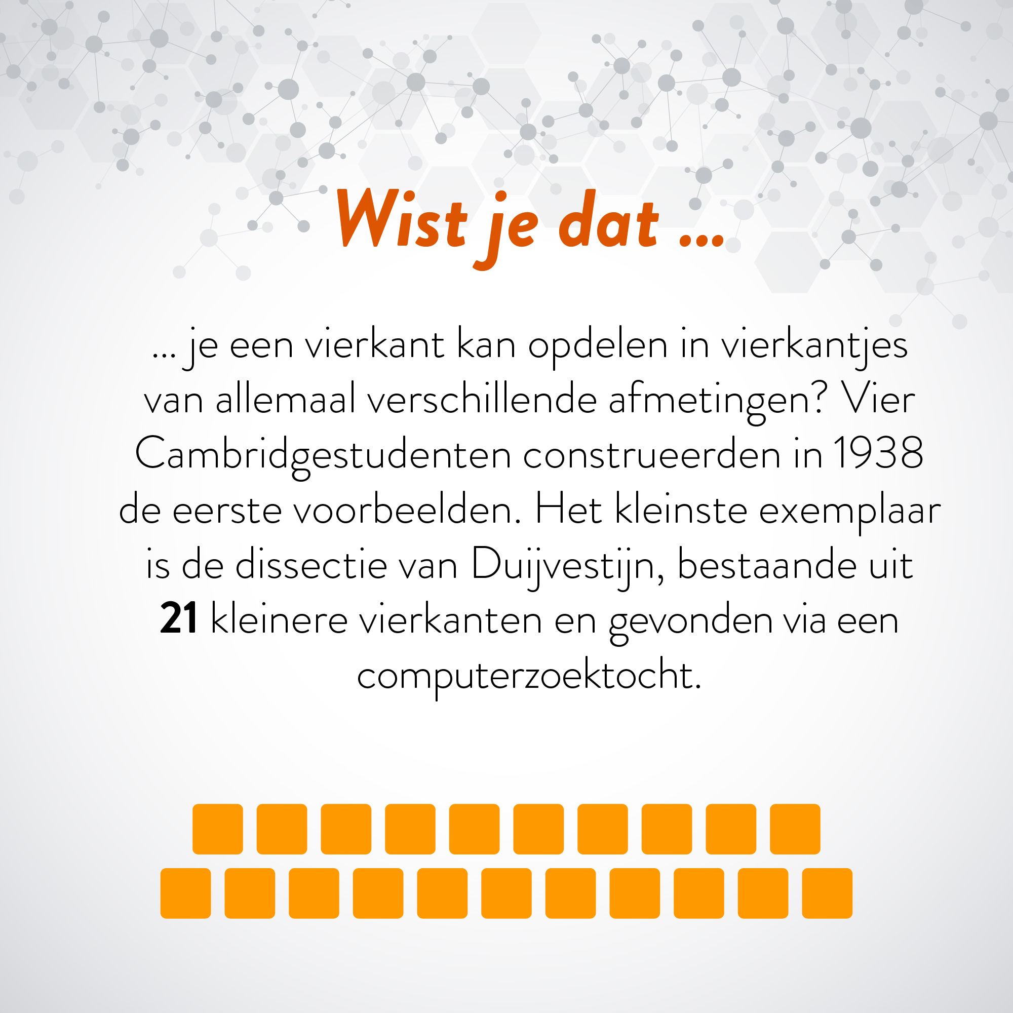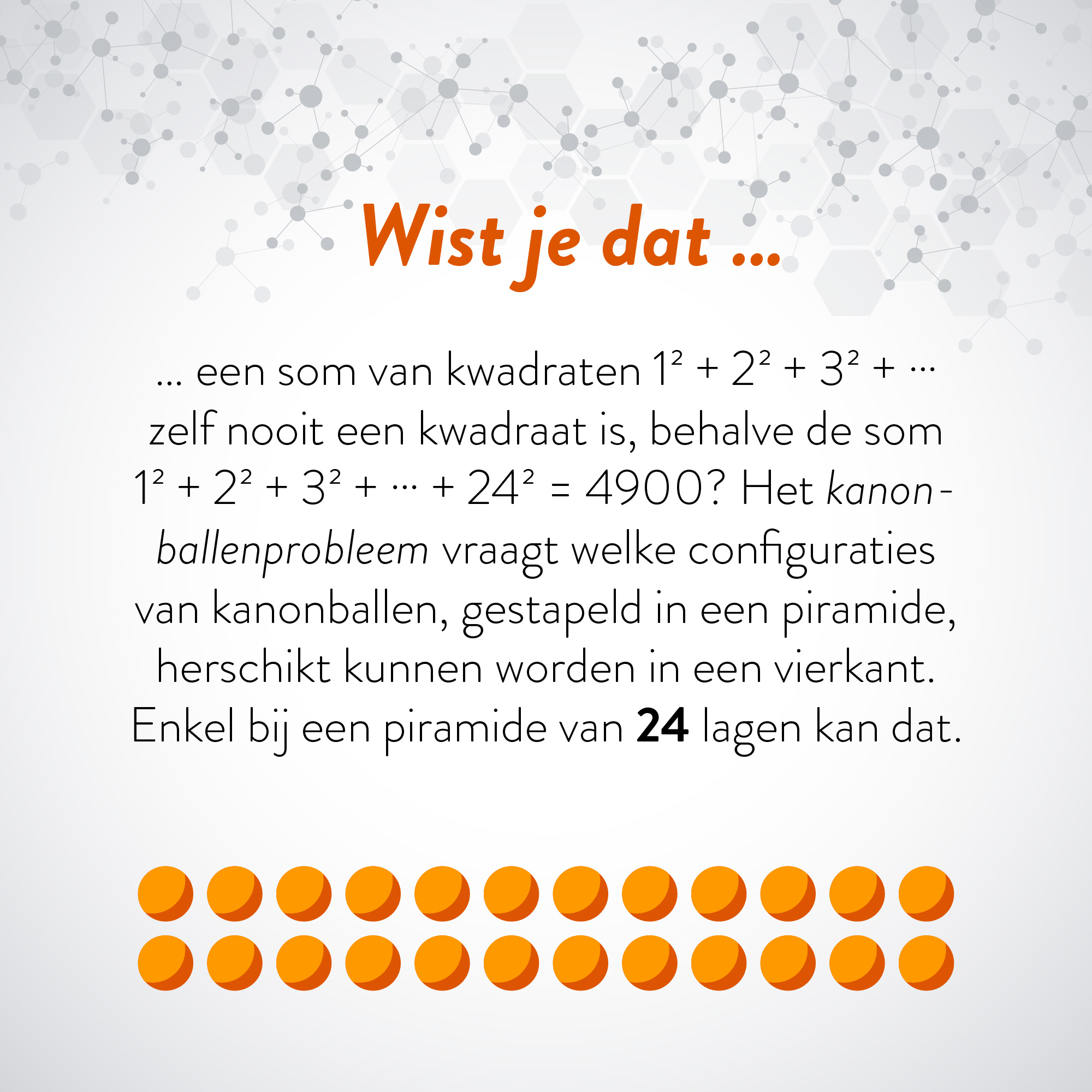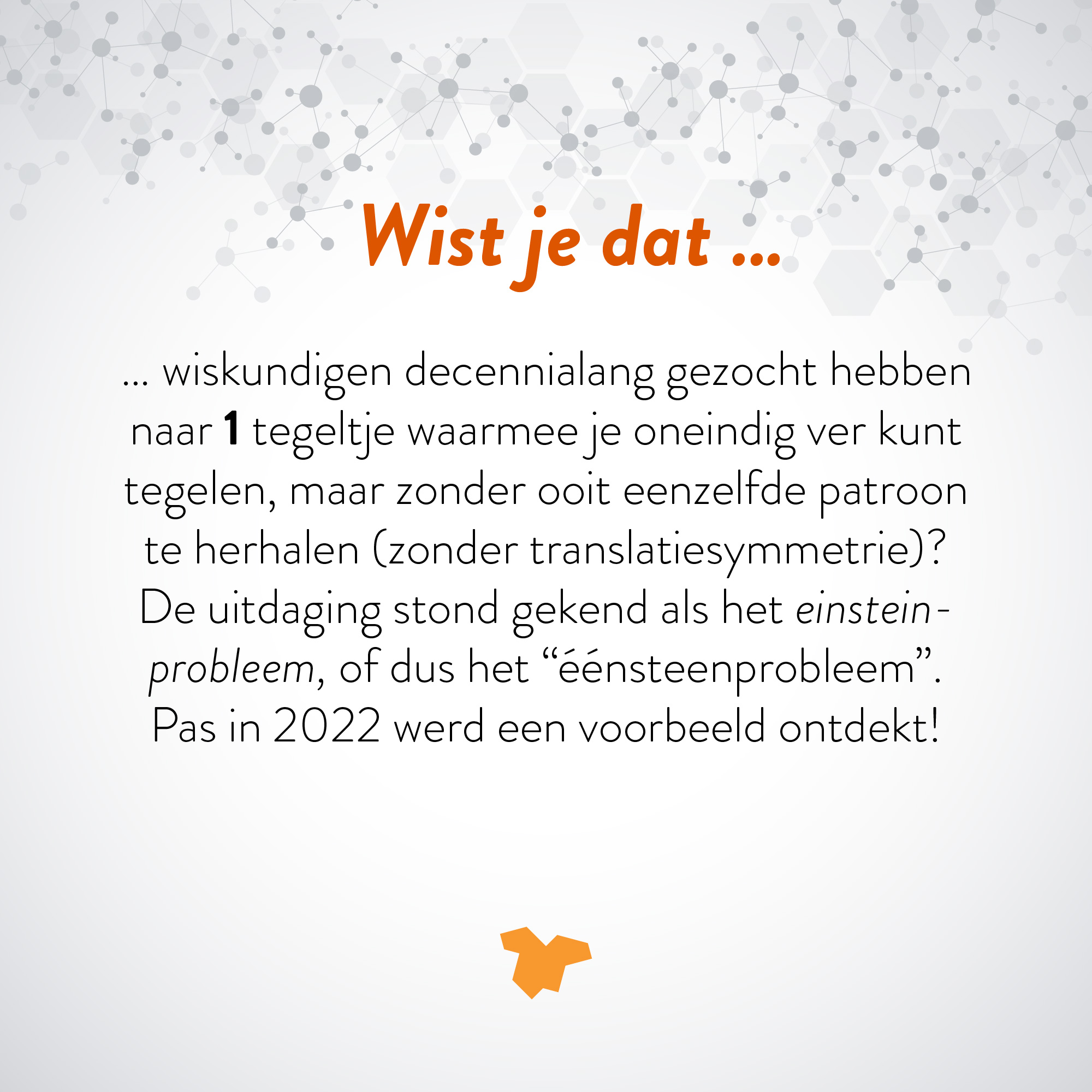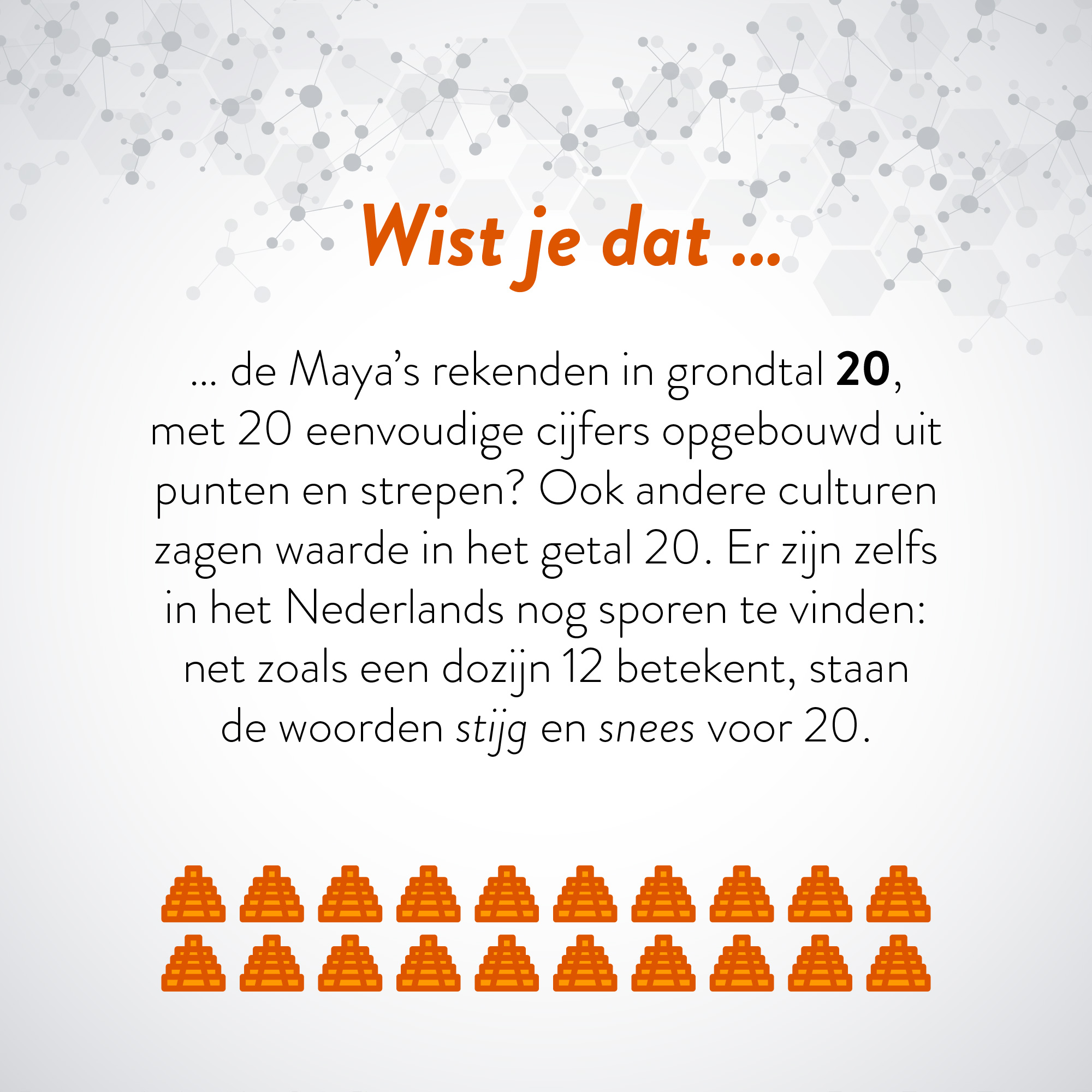 Over enkele van deze onderwerpen schreven we trouwens al heel wat meer in eerdere blogs of begeleidende bundels. Zo kan je bijvoorbeeld meer leren over DNA, het telsysteem bij de Maya’s, schuifpuzzels, quarks en andere elementaire deeltjes en de einsteintegel. Wil je nog meer weten over een van de andere weetjes? Laat je verzoekje hieronder achter!