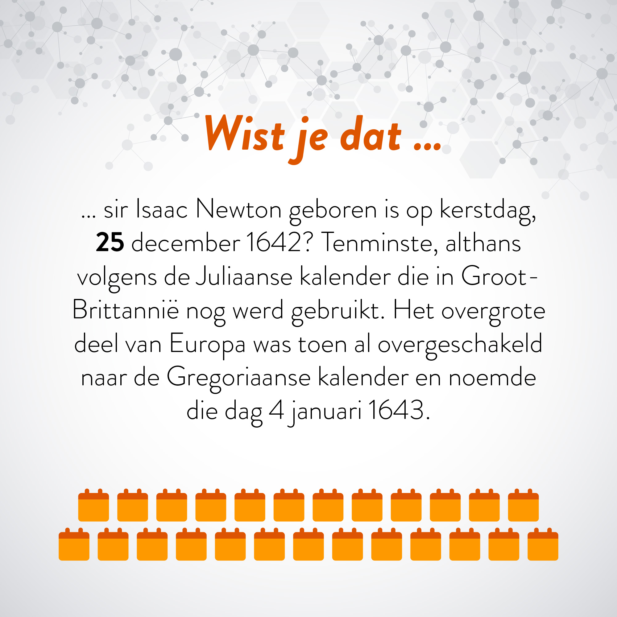 Socialmedia-advies vind je overal, maar helpt het ook? Wel, de advent leek ons een prima aanleiding om eens enkele tips te testen: van de aanbevolen tijden die Meta zelf voorstelt tot klassiekers zoals dagelijks posten, hooks gebruiken of een herkenbare stijl aanhouden. Uiteraard mag dat niet ten koste gaan van de kwaliteit, dus gingen we op zoek naar oprecht interessante weetjes bij elk getal van 28 tot 1. Die zoektocht leverde ons een leerrijke maand op en de weetjes lokten ook op onze Discordserver voor wetenschapsfans enkele verbaasde reacties uit. Een geslaagde adventreeks dus, en daarom besloten we ze ook even in deze korte blogpost te verzamelen voor wie niet (graag) op sociale media vertoeft, maar wel graag bijleert.