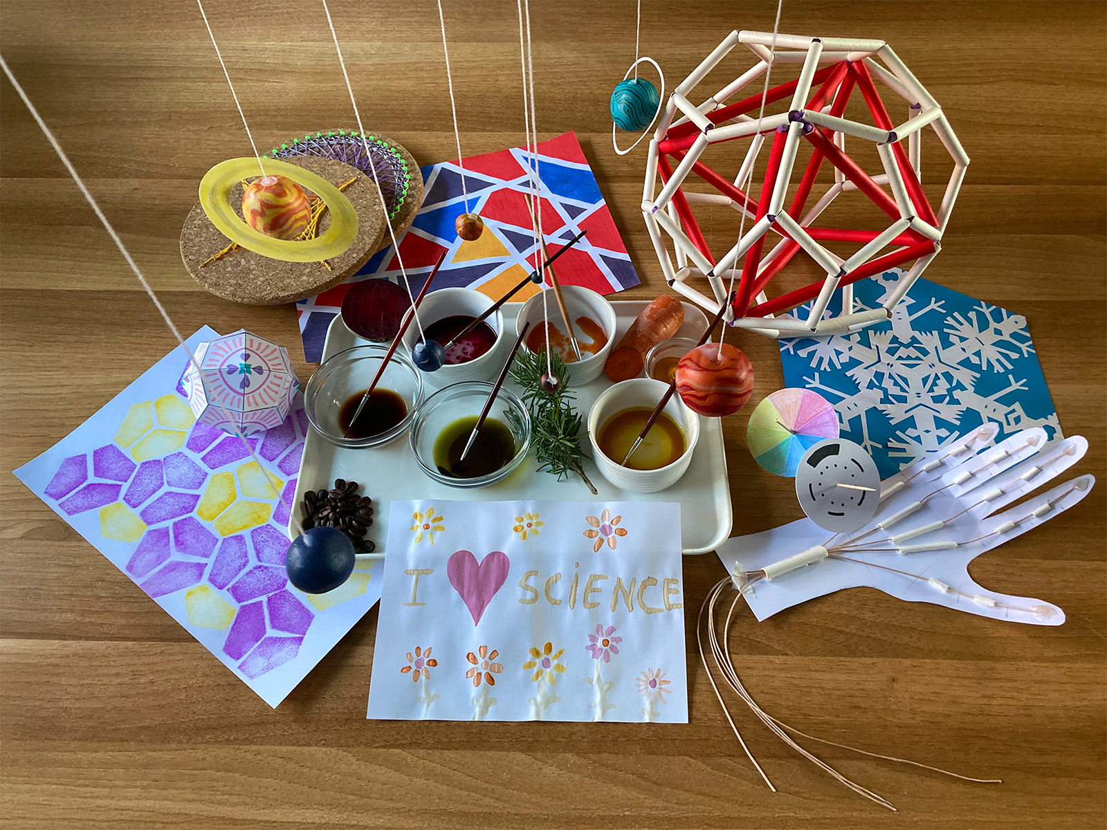 We gaan de hele week knutselen met wetenschap als onze bron van inspiratie én technieken. Van wiskundig gemotiveerde patronen tot de chemie en fysica die achter kleuren schuilt en van kunstwerken vol structuur tot de pracht van een beetje chaos … er is haast te veel interessants om uit te kiezen. We gaan natuurlijk vooral veel mooie kunstwerkjes maken, maar ondertussen leren we proefondervindelijk ook bij.