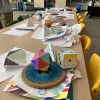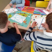 We gaan drie dagen lang knutselen met wiskunde. Ja, dat las je goed! Wiskunde en kunst hebben meer met elkaar te maken dan je denkt. Gaan we dan veel rekenen? Dat valt best mee, naast getallen en bewerkingen zorgen ook vormen, lijnen en bewegingen voor wiskundepret. We gaan natuurlijk vooral veel mooie kunstwerkjes maken, maar ondertussen leren we proefondervindelijk ook bij.